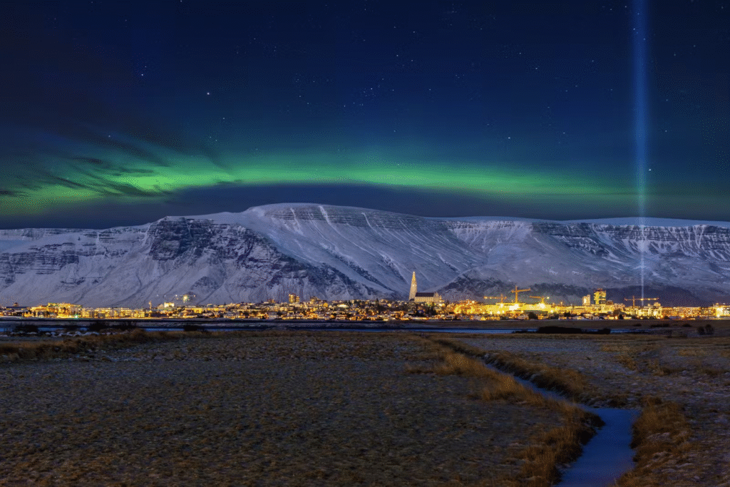 While it’s possible to catch the aurora in Iceland’s capital, darker skies just outside the city offer better conditions. Thingvellir National Park and the Reykjanes Peninsula (home to the famous Blue Lagoon) are easily accessible and popular viewing spots.